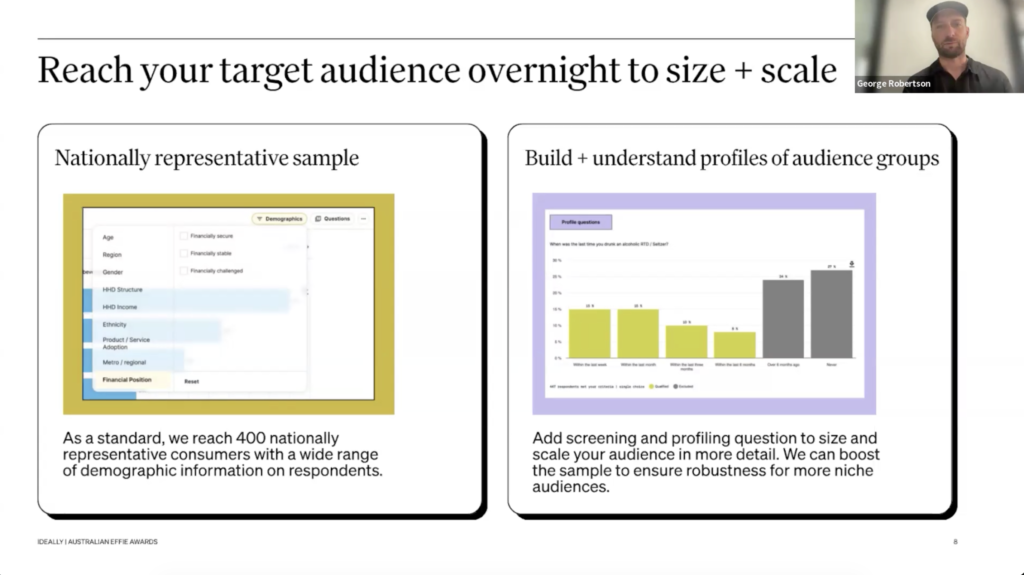 “Use consumers to help with the paper’s narrative. Most use cases have been to fill in missing data points on how the work has ‘worked’ against a category context” said George Robertson, Ideally’s Global Agency Lead.