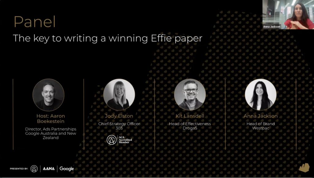 Effie judges, past winners from Westpac, Droga5 and 303, and effectiveness experts broke down how winning cases are built, from shaping the story to proving commercial impact.