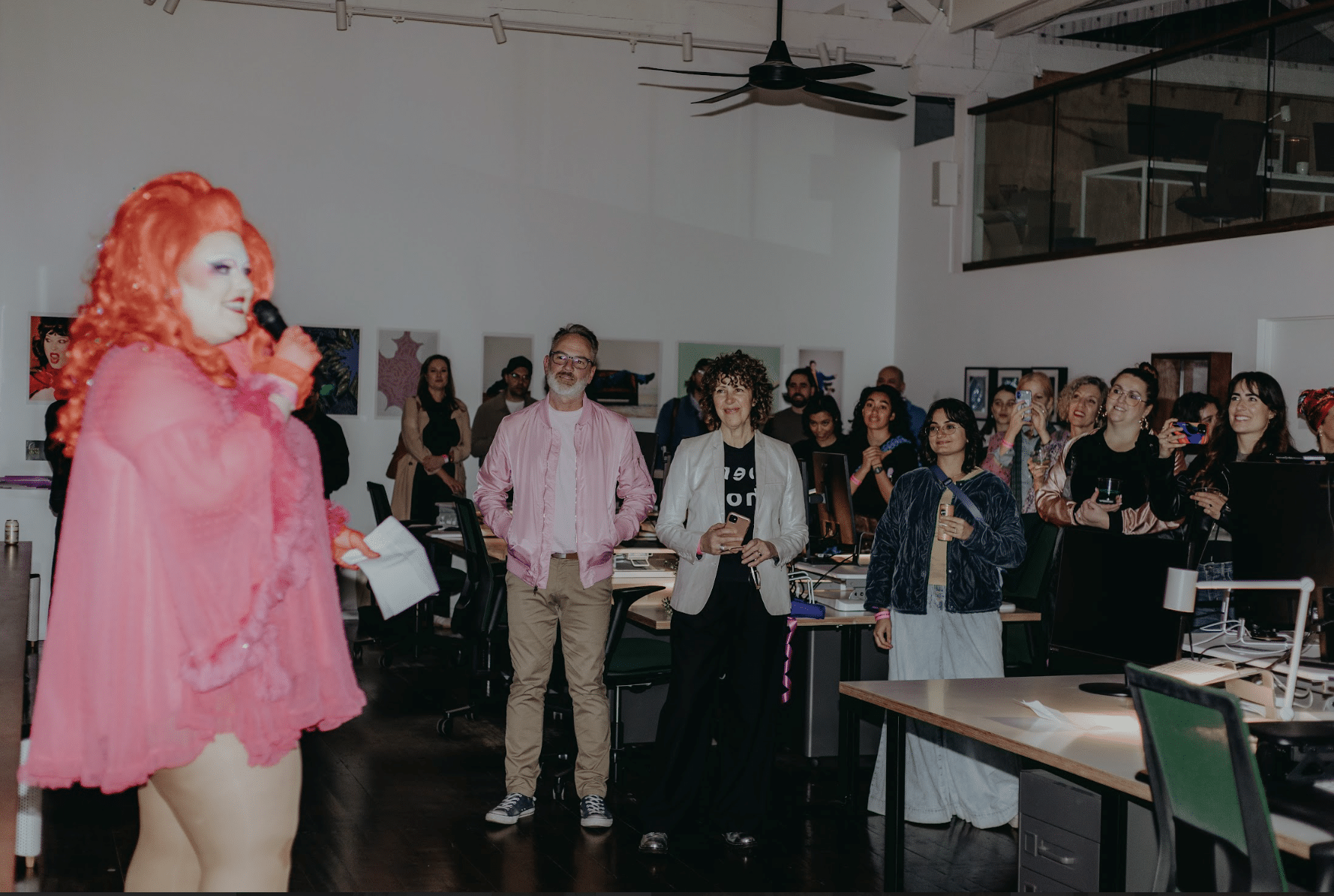 The exhibition featured over 25 artists working across advertising, media and film, each highlighting the unique perspectives and cultural influence queer creatives bring to the industry. The evening was hosted by Friends of Rhonda founder Jules Stretch, aka Mum the Drag Queen, who set the tone:
